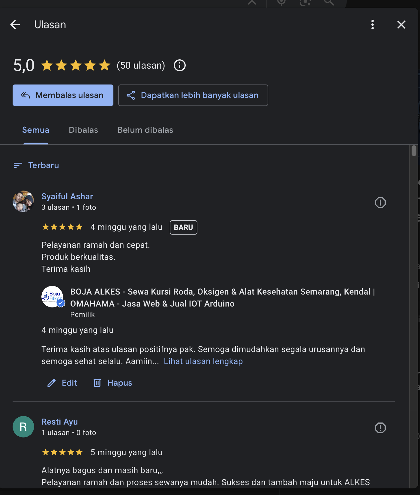 Anda bisa melihat testimoni di google map Boja AlkesΒ